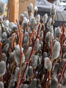 For native trees look no further than pussy willow (Salix discolor) and red and sugar maples. Pussy willow is another container favorite, adding height and color interest with its fuzzy catkins before the leaves emerge. Red maple bursts forth with tiny clusters of red flowers while sugar maples adorn their branches with small yellow-green blooms.