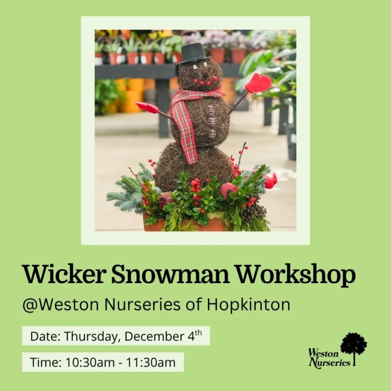 Dates: Every Sunday Time: 11am - 2pm Location: Weston Nurseries of Hopkinton About this event: The Hopkinton Farmer’s Market will be hosted by Weston Nurseries again this Winter! Come check out the local farm fresh produce, seafood, meats & eggs, bread, desserts, craft beverages, handmade products & food trucks. For more information, click here!
