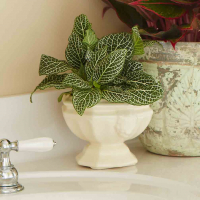 Add frilly color to low-light areas with nerve plant, also called fittonia. This attractive, small-leaf native of Peru is available in a variety of leaf colors and bicolors: green leaves can be partially or mostly colored in pink, white, and light green. Nerve plant is small, growing 6 to 12 inches so it’s ideal for windowsill planters, small containers, or terrariums.