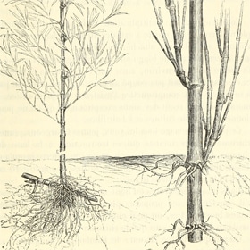 At Weston Nurseries we carry from time to time two types of bamboo plants: clumping bamboo, and running bamboo. The clumping genus that is hardy to our service area and that we carry when our growers offer a quality stock is Fargesia, the fountain bamboo. I want to discuss running bamboos. The genus that we carry from time to time is Phyllostachys. In the past we have carried Pleioblastus, Sasa, and Sasaella which are also running bamboo genuses.