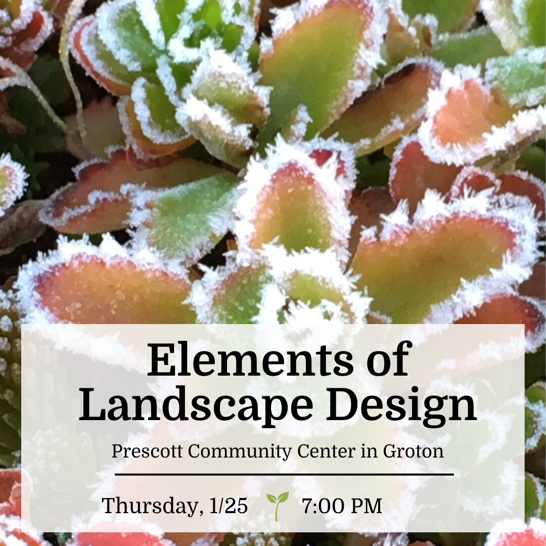 Trevor Smith will conduct a Elements of Landscape Design seminar at the Prescott Community Center in Groton on January 25, 2024 at 7pm.