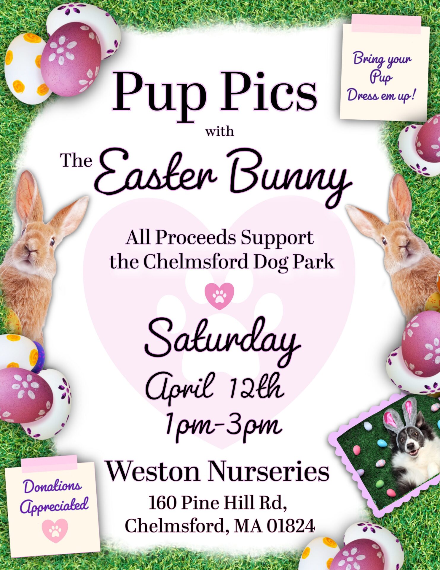 Dress your pups up to take a picture with the Easter Bunny at Weston Nurseries of Chelmsford!