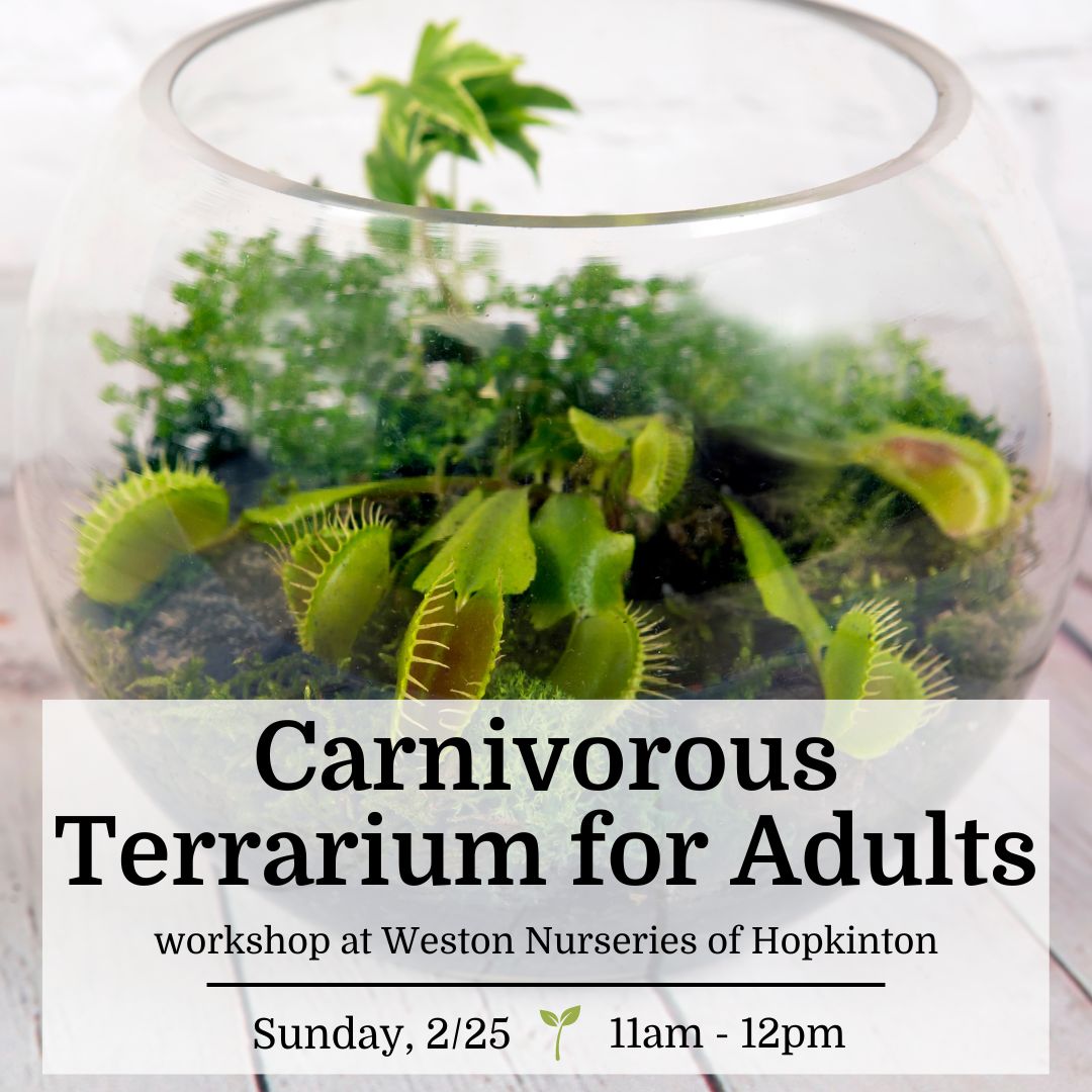 Weston Nurseries Garden Center - Hopkinton 93 East Main St, HopkintonClick to Register Date: Sunday, 2/25 Time: 11am - 12pm Location: The Potting Bar at Weston Nurseries of Hopkinton Price: $75/person About this workshop: Intrigued by the mysterious world of carnivorous plants? Join Matt […]