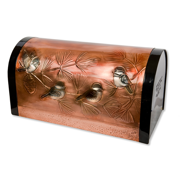 We are pleased to carry gorgeous hand embossed copper mailboxes locally crafted by the artist Gregory Hentzi. Each beautiful 3-dimensional design is a scene of animals in motion, a serene landscape or simply a close up of wheat and dragonflies. Greg’s work is inspired by nature’s beauty and his stunning artwork will certainly enhance your home’s curb appeal.