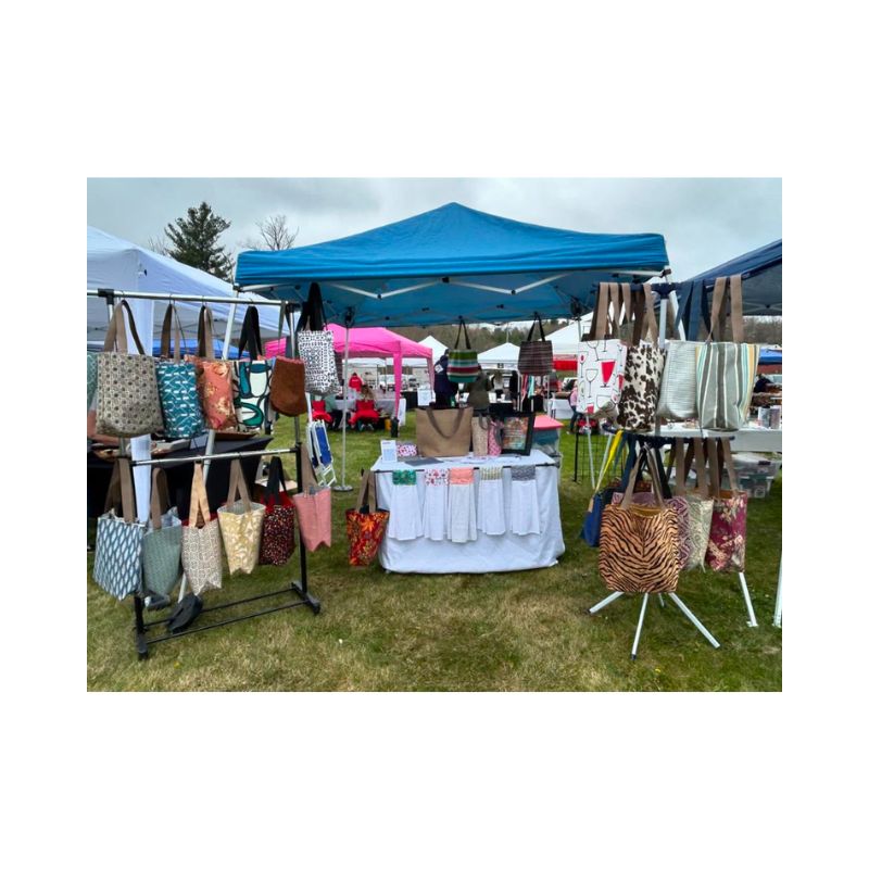 One-of-a-kind hand sewn tote bags from upcycled fabric like upholstery remnants or curtains.
