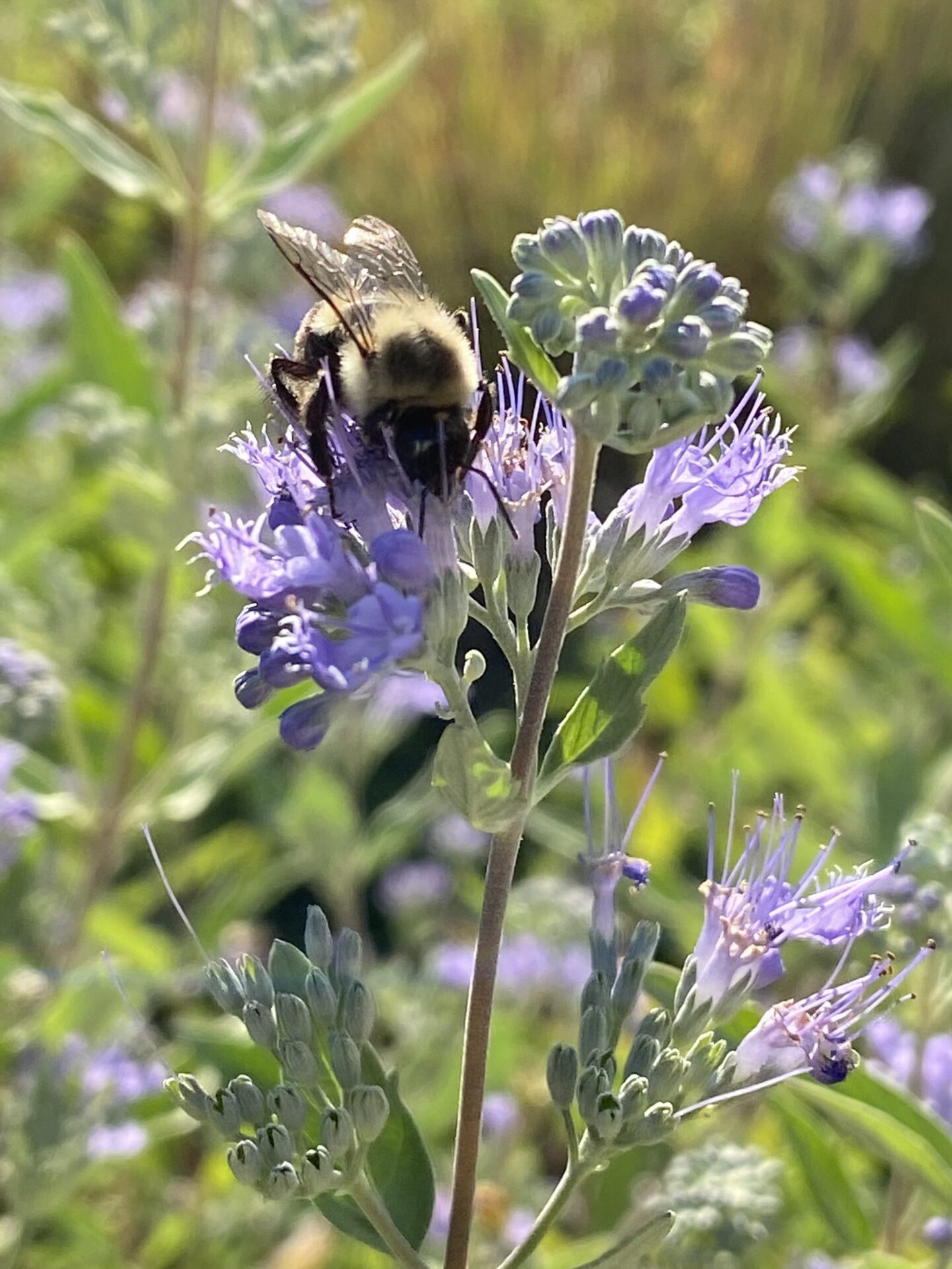 Bluebeard (Caryopteris spp.) is a small drought tolerant shrub suitable for sunny conditions. As its common name suggests, its flowers come in varying shades of blue and lavender, although breeders have now developed a couple of compact, pink-flowered hybrids. Not only does this shrub offer food for pollinators but it also has attractive aromatic foliage which means it is one of those plants that deer and rabbits leave alone. It can behave similarly to buddleia in that winter cold can cause some branch die-back, however removing the dead wood in spring will ensure that by the time it blooms again you will never know it had suffered any adverse effects.