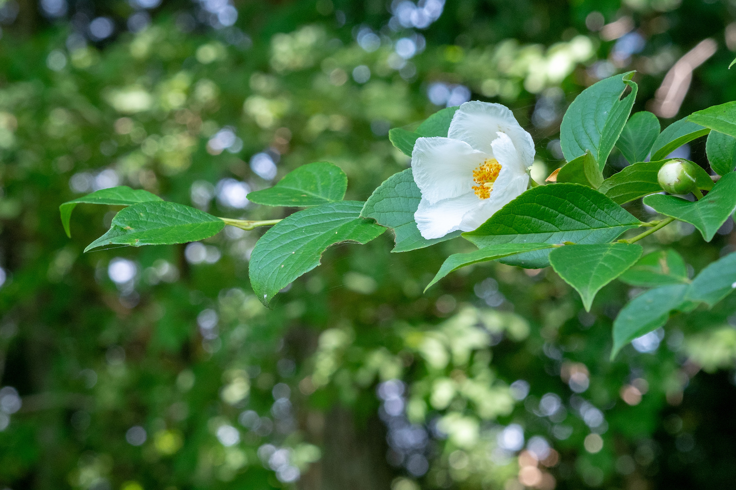 Another tree of Asian origin that saves its flowers for summer is stewartia. Japanese stewartia (stewartia pseudocamellia) is the species most commonly found for sale. This tree deserves to be better known, as it offers not only wonderful white flowers resembling those of the camellia shrub, but also has colorful fall foliage and attractive peeling bark, making it a worthy all-season landscape tree.