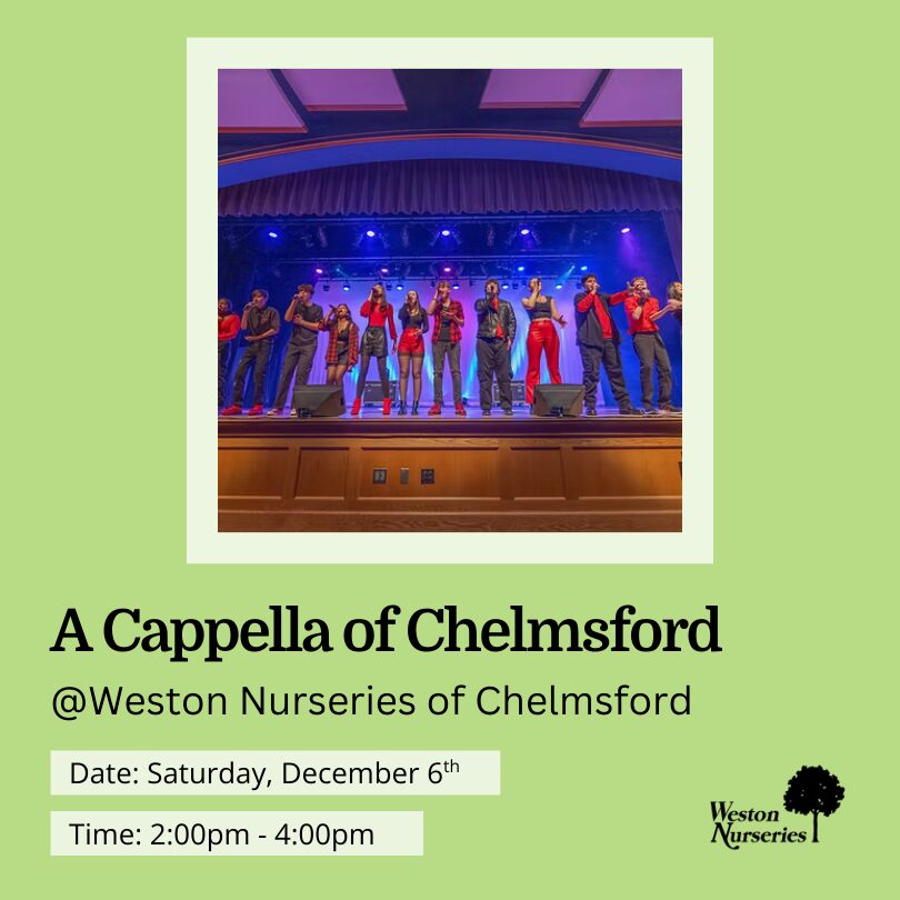 Two Chelmsford High A Cappella groups (The Crescendos + The Thursdays) will be at Weston Nurseries of Chelmsford on Dec. 6th. Don't miss their live performance happening at our Chelmsford […]