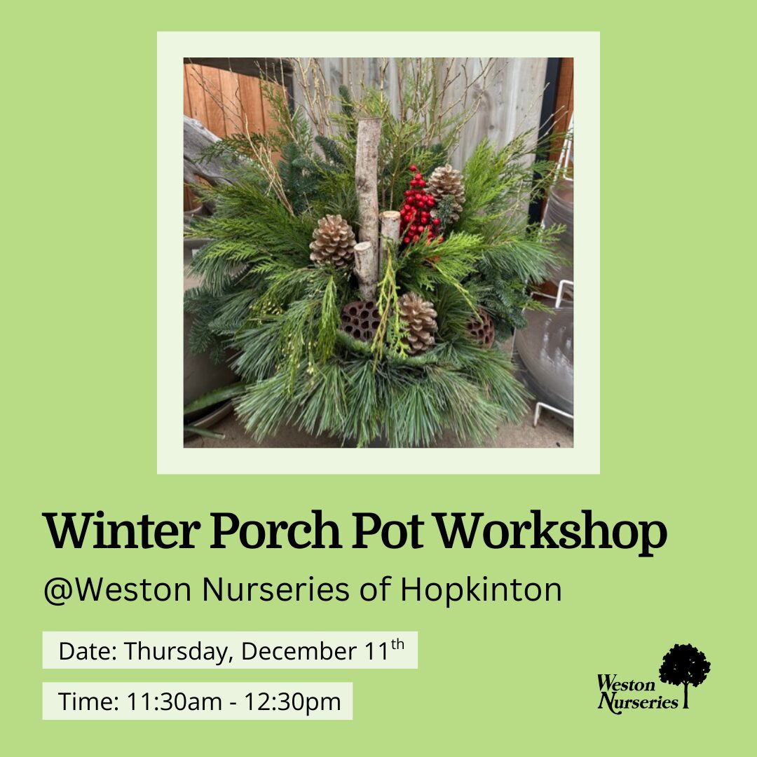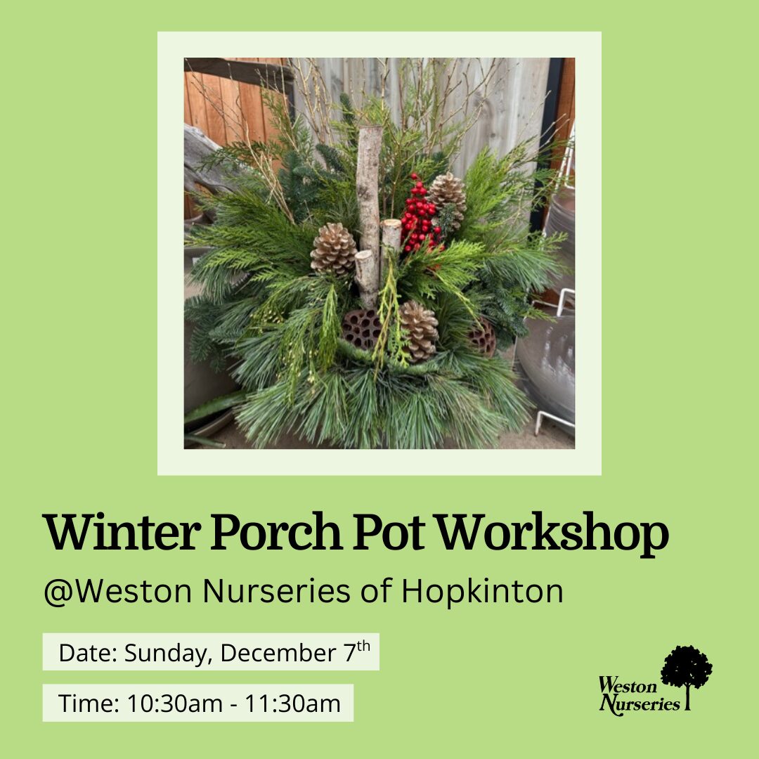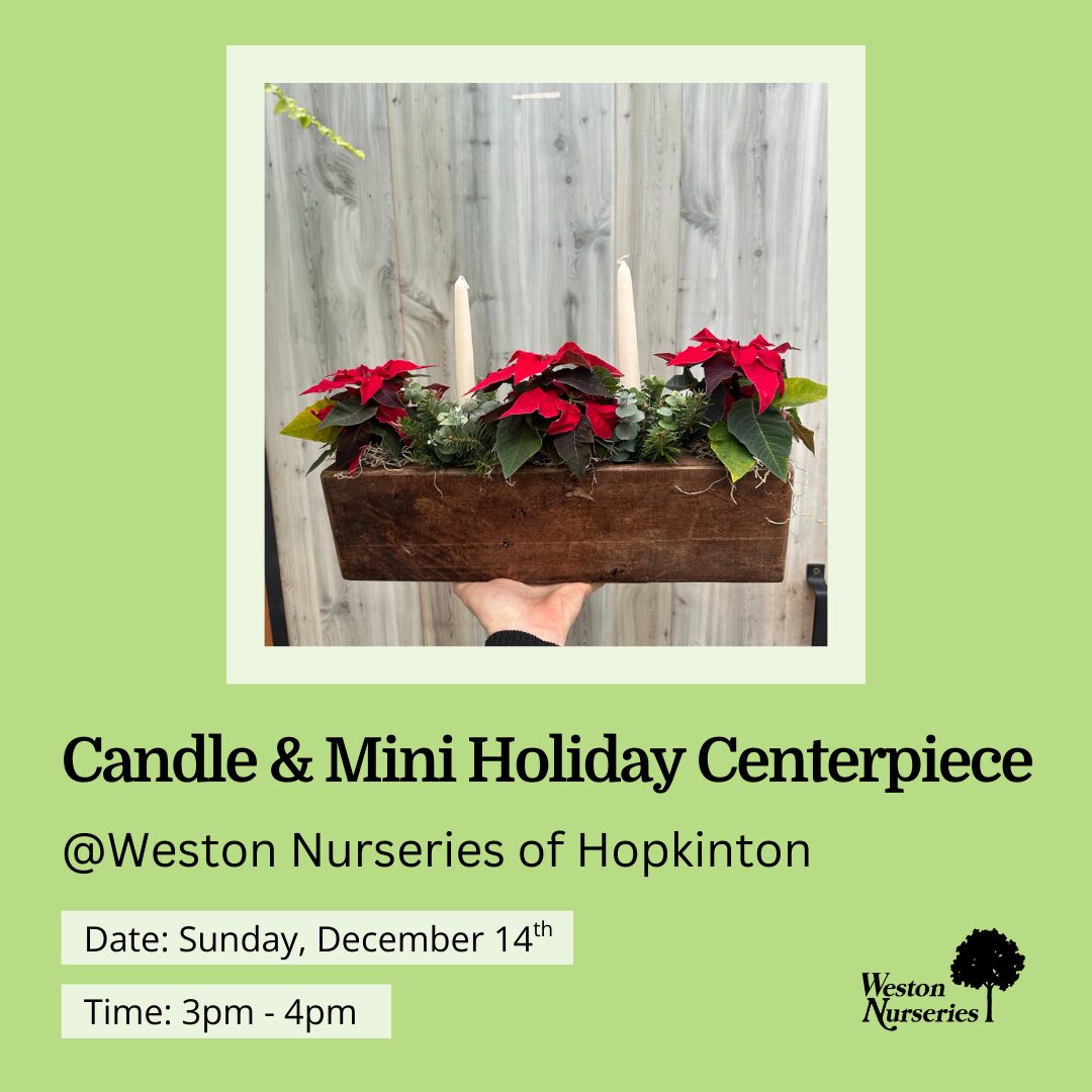 Santa will be visiting Weston Nurseries’ Chelmsford location December 7th and 14th from 10am to 2pm. Come find the perfect tree, custom wreath, browse the cutest holiday shop in […]