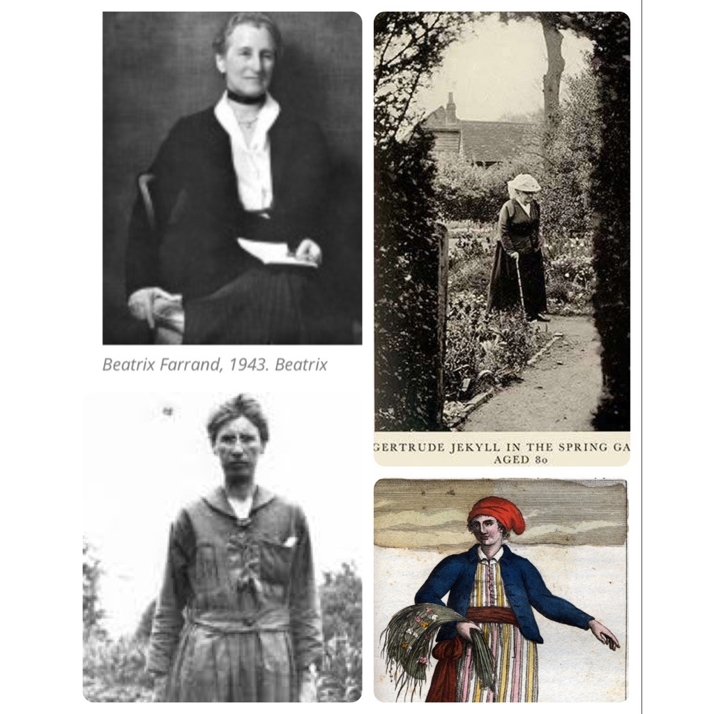 Photos: Isabella Preston, “Botanist” The Daily Gardener. Jeanne Baret The Mariners “Ages of Exploration”. Beatrix Jones Farrand, 1943 portrait. The Beatrix Farrand Society archives. “Gertrude Jekyll in the Spring Garden. Aged 80” English Heritage.